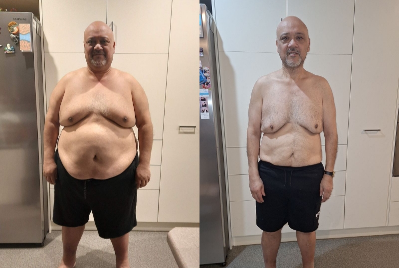 I've lost 3kgs since using for breakfast and dinner and I have half a meal has my main meal at lunch time, I'm going to get my friend to take a photo of me in shorts and t-shirt tomorrow morning and email it to you, I weighed 130kgs in June last year.