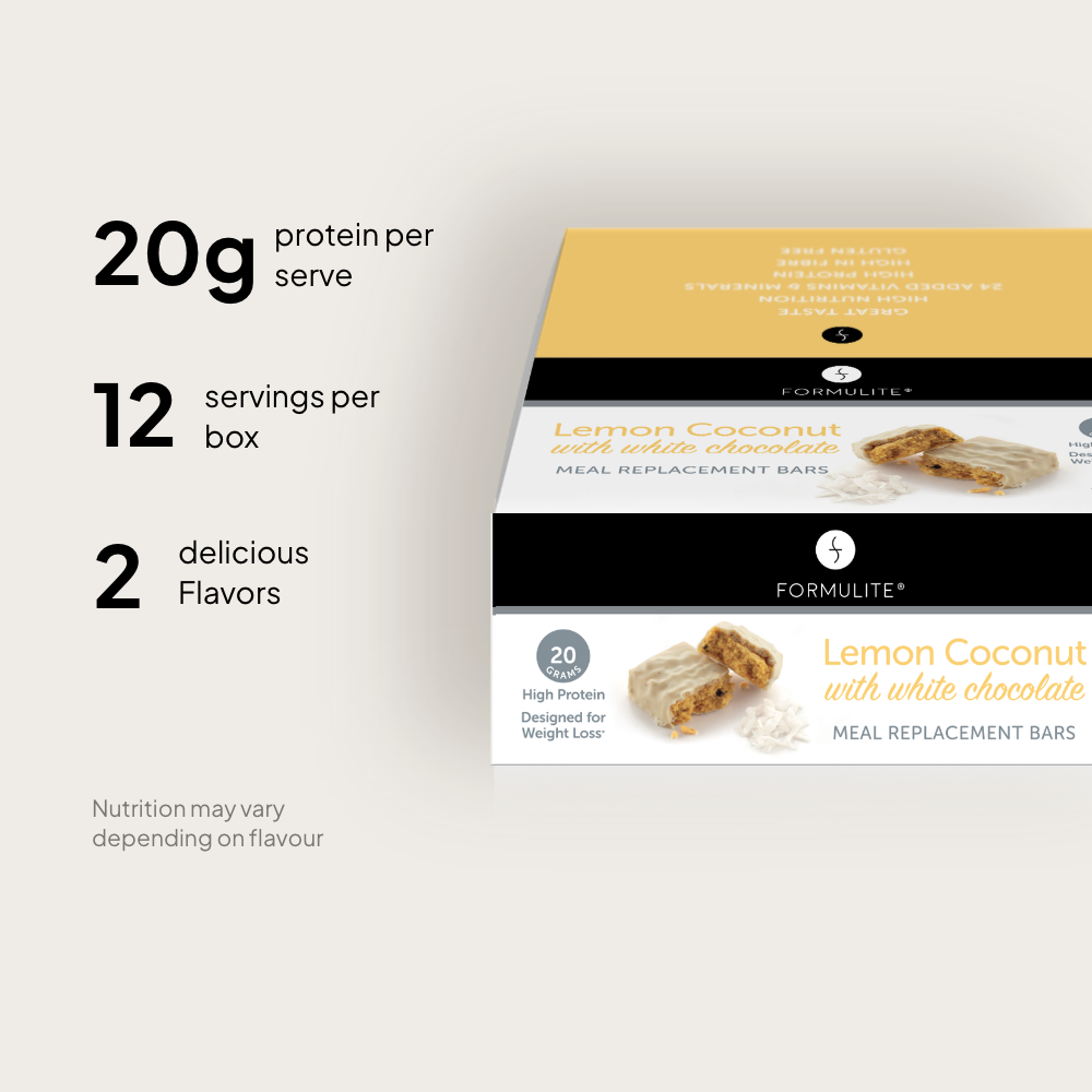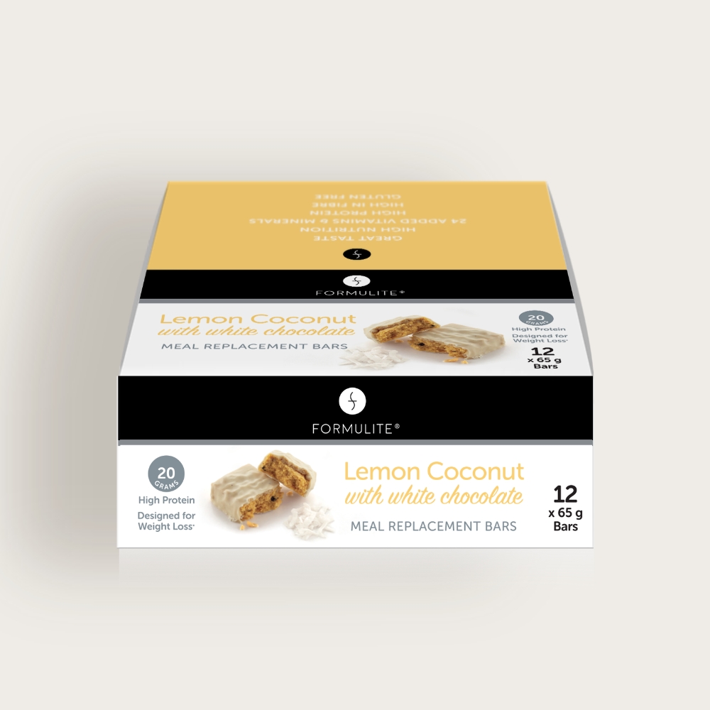Formulite bars provide high protein and a good source of fibre in one convenient, delicious and nutritious meal.  Box contains 12 Lemon Coconut bars.