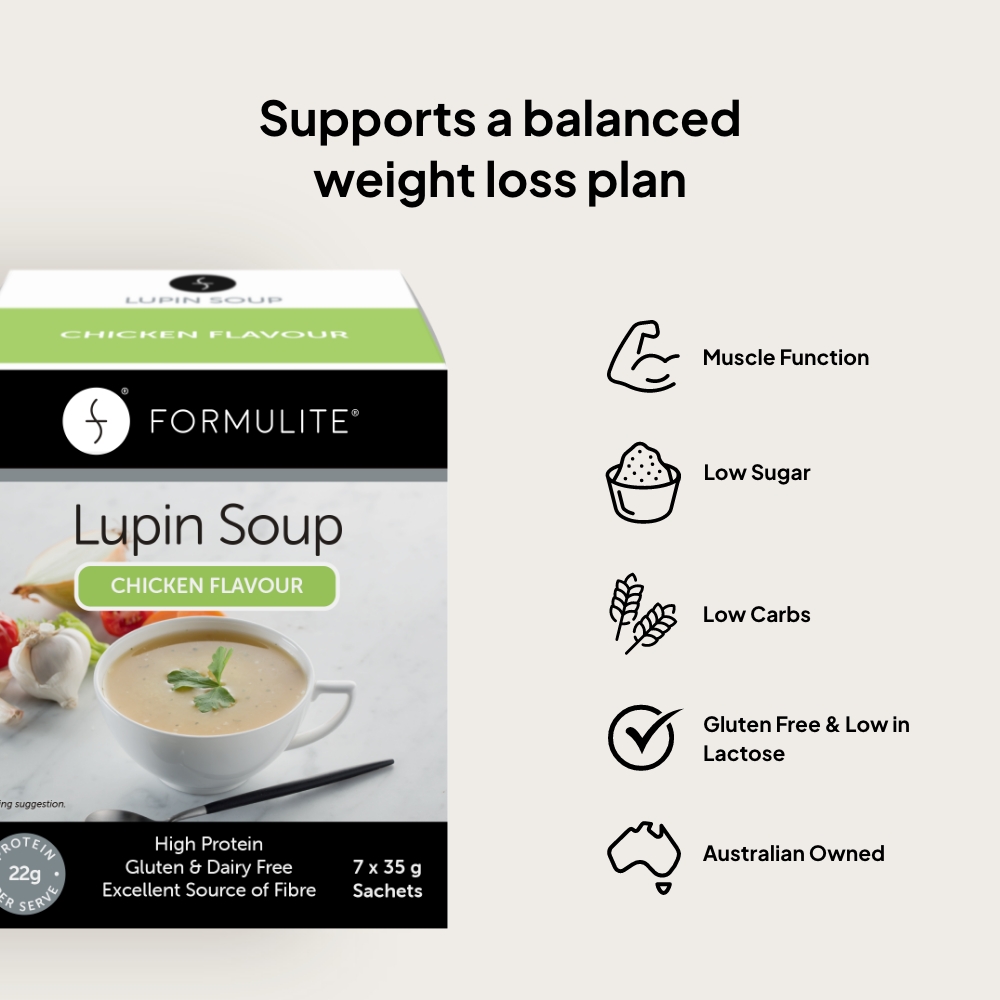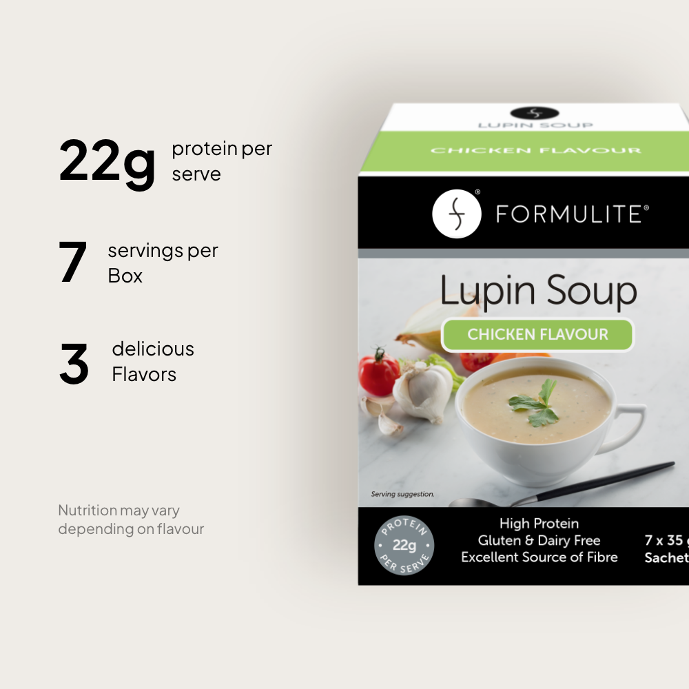 Enjoy this satisfying snack and feel fuller longer with Formulite’s Lupin Soups.