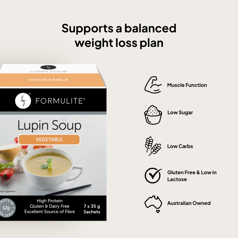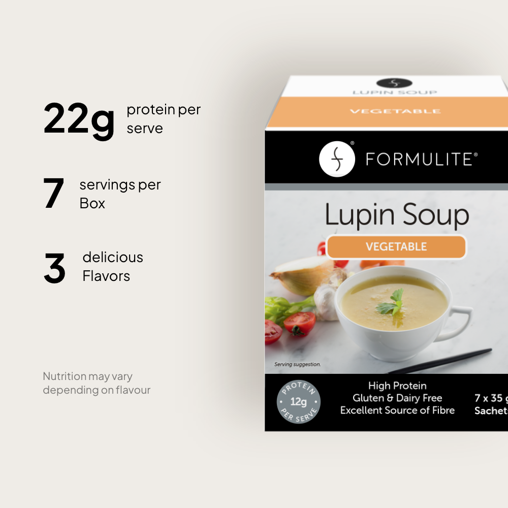 Enjoy this satisfying snack and feel fuller longer with Formulite’s Lupin Soups.