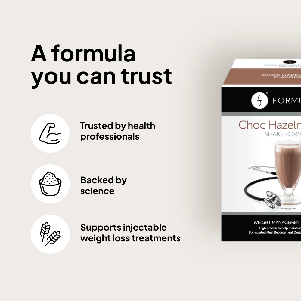 Scientifically-balanced, each shake provides your body with the optimal mix of protein, fibre, fats, and 24 essential vitamins and minerals – delivering maximum nutrition and weight management control. Formulite shakes complement GLP-1 injectable treatments for effective weight loss & nutrition support.