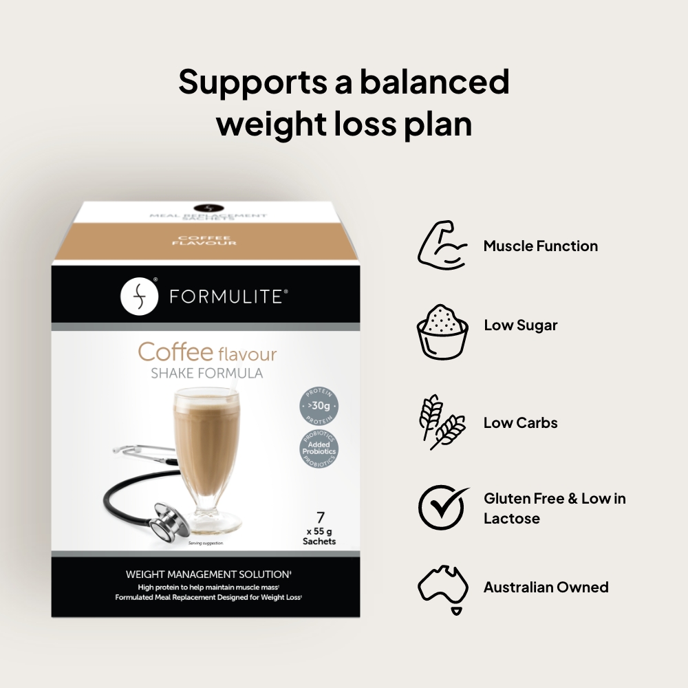 Caffeine level per serve of Formulite Coffee Flavour is approx. 66mg