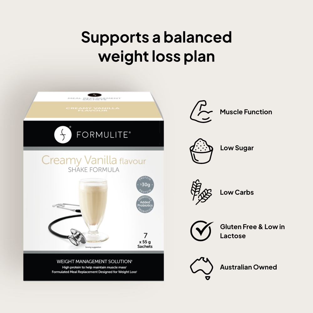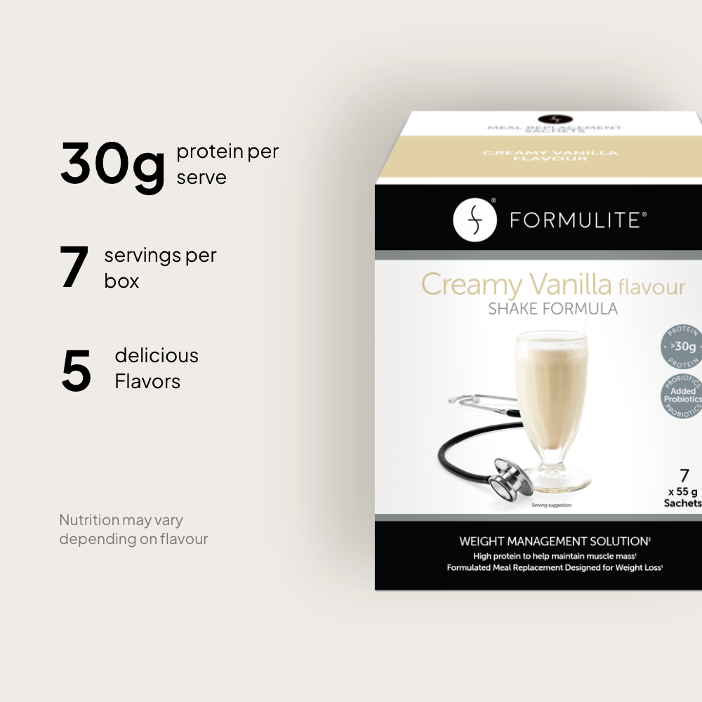 The number of Formulite weight loss shakes you have per day will depend on your goal. To use Formulite for pre-bariatric surgery or rapid weight loss, replace three meals per day with a meal replacement shake combined with low calorie snacks.